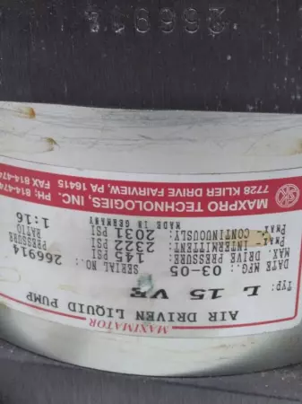 The Maxpro L15-VE Maximator Air Driven Liquid Pump features a ratio of 1:16, providing efficient and powerful liquid pumping capabilities. Powered by air, this pump is reliable and easy to use for various industrial applications.